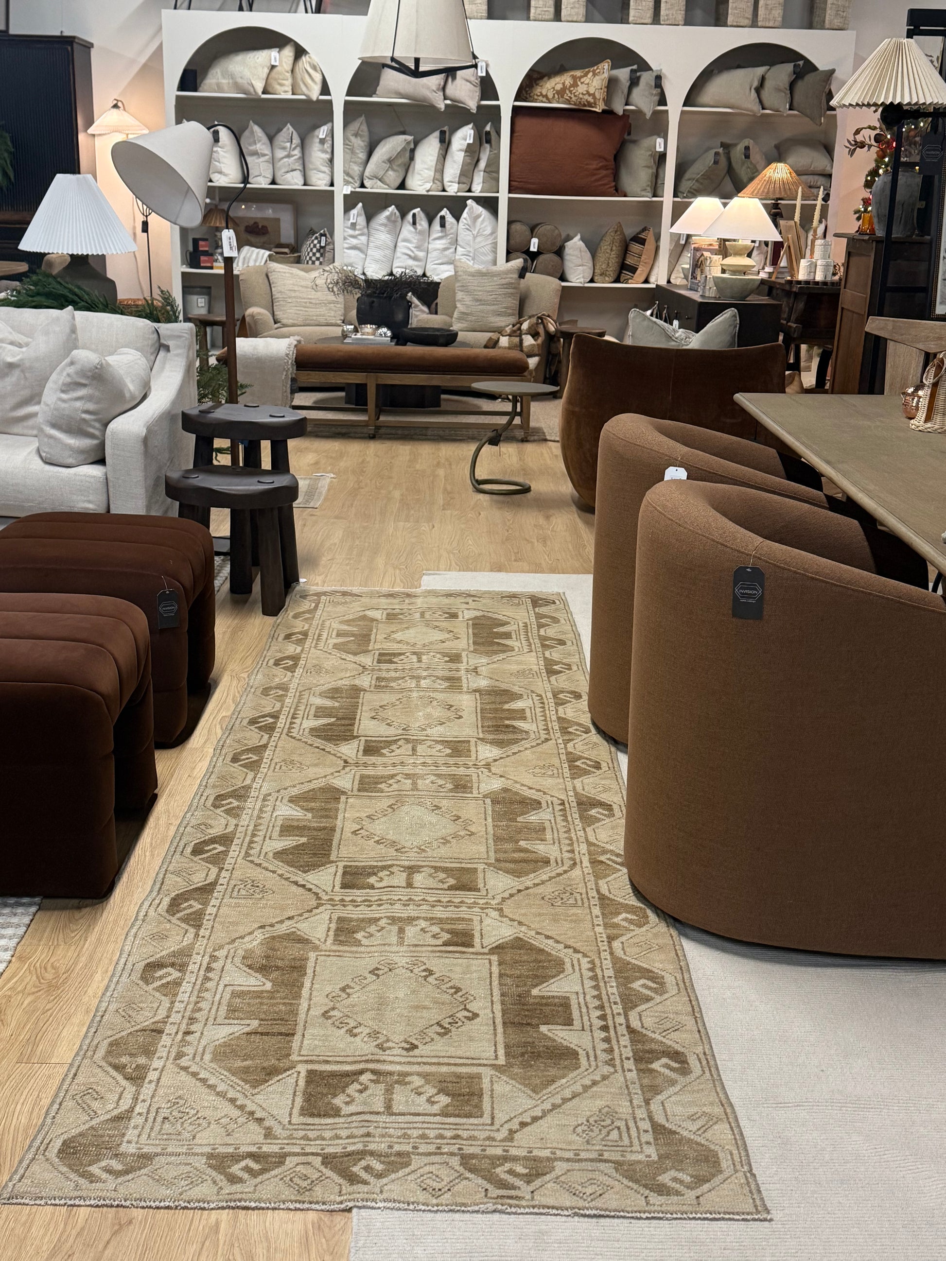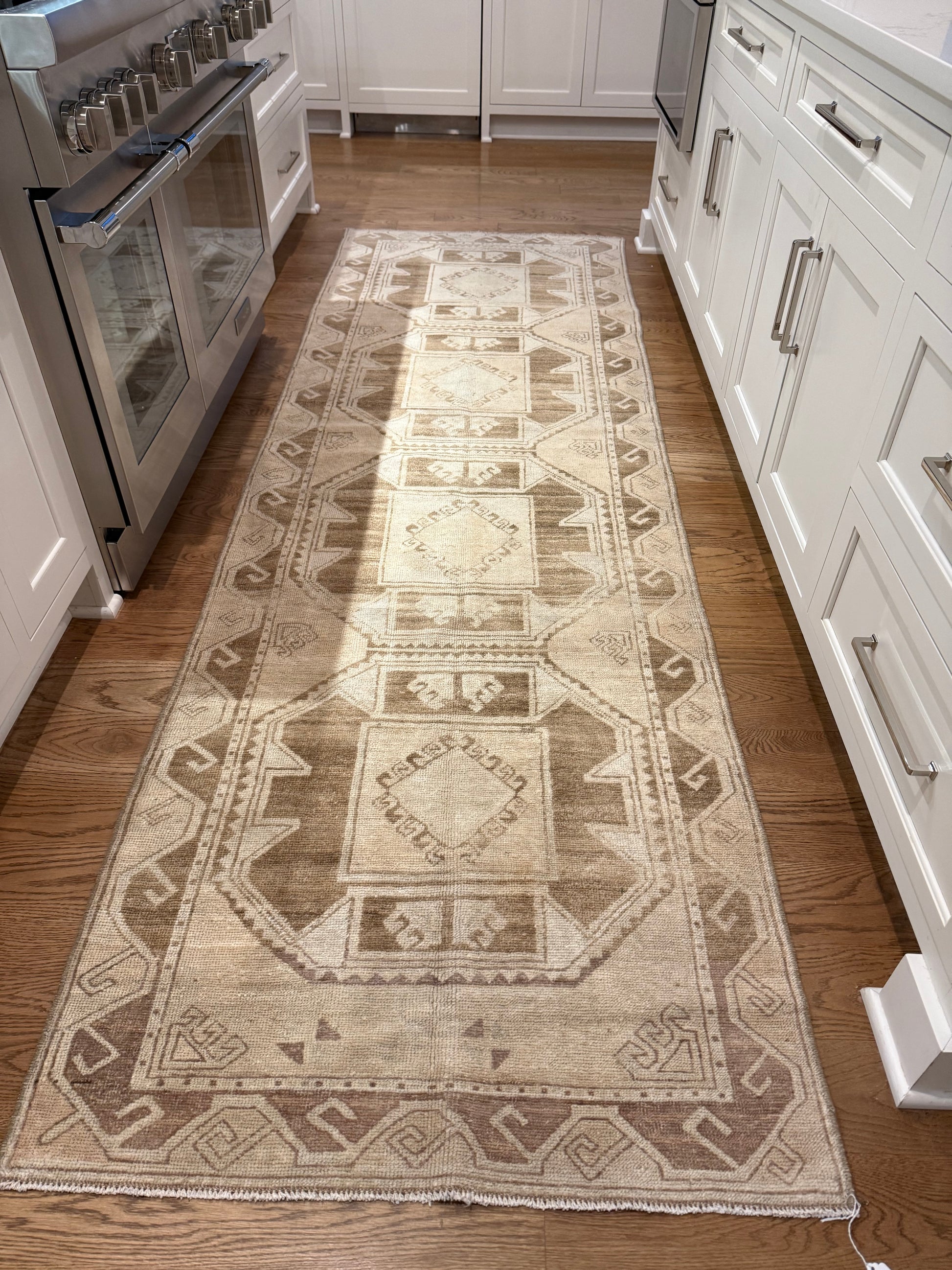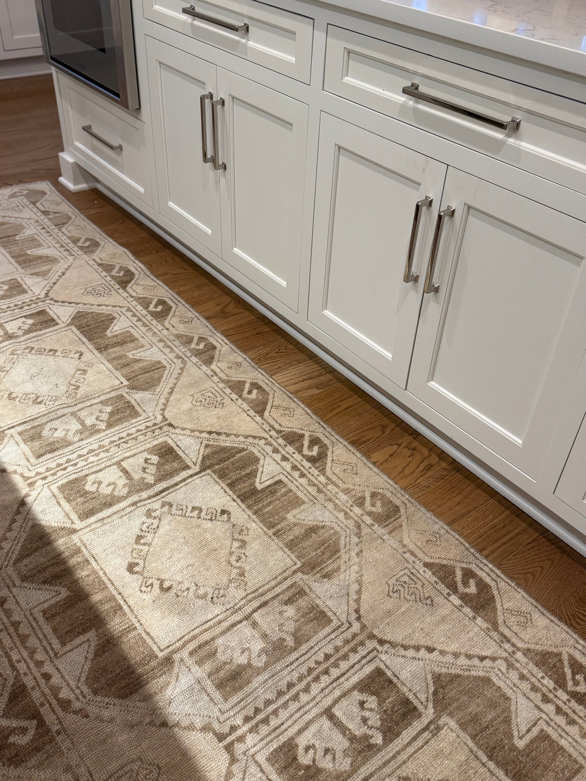 We are loving this wool vintage oushak that is approximately 70 years old. She is soft yet sturdy and suitable for any space.